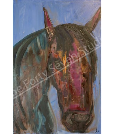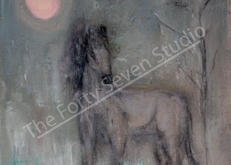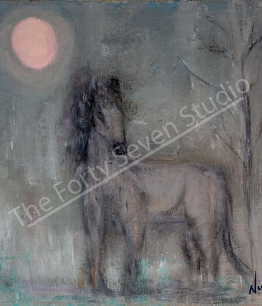 The minute I laid eyes on the raven and horse painting it called to me. If you can imagine the pure beauty of connection between two animals...then this painting spoke that image aloud. I cannot stop looking at it on my wall!!